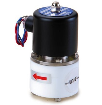 鐵弗龍閥體耐強酸堿專用型, 二口二位式常閉型(通電開型)電磁閥。 型號:UDC-8.10.15.20 TF 口徑自1/4"~3/4"。 適用流體:酸堿性腐蝕性流體用途。