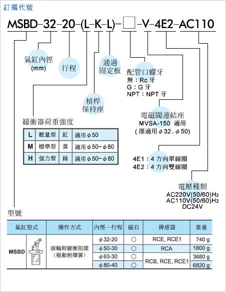 作動(dòng)缸徑—行程   φ32-20, φ50-30, φ63-30, φ80-40