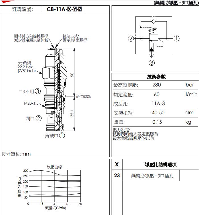 臺(tái)灣武漢機(jī)械CB11A23IL抗衡閥