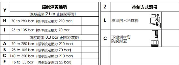 作動(dòng) 液壓符號(hào) 類(lèi)別 主訂購(gòu)代號(hào) 流量